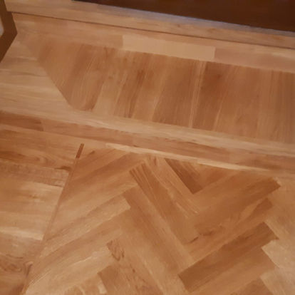 Spina di pesce con fascia e bindello in rovere massello 300x70x10 mm